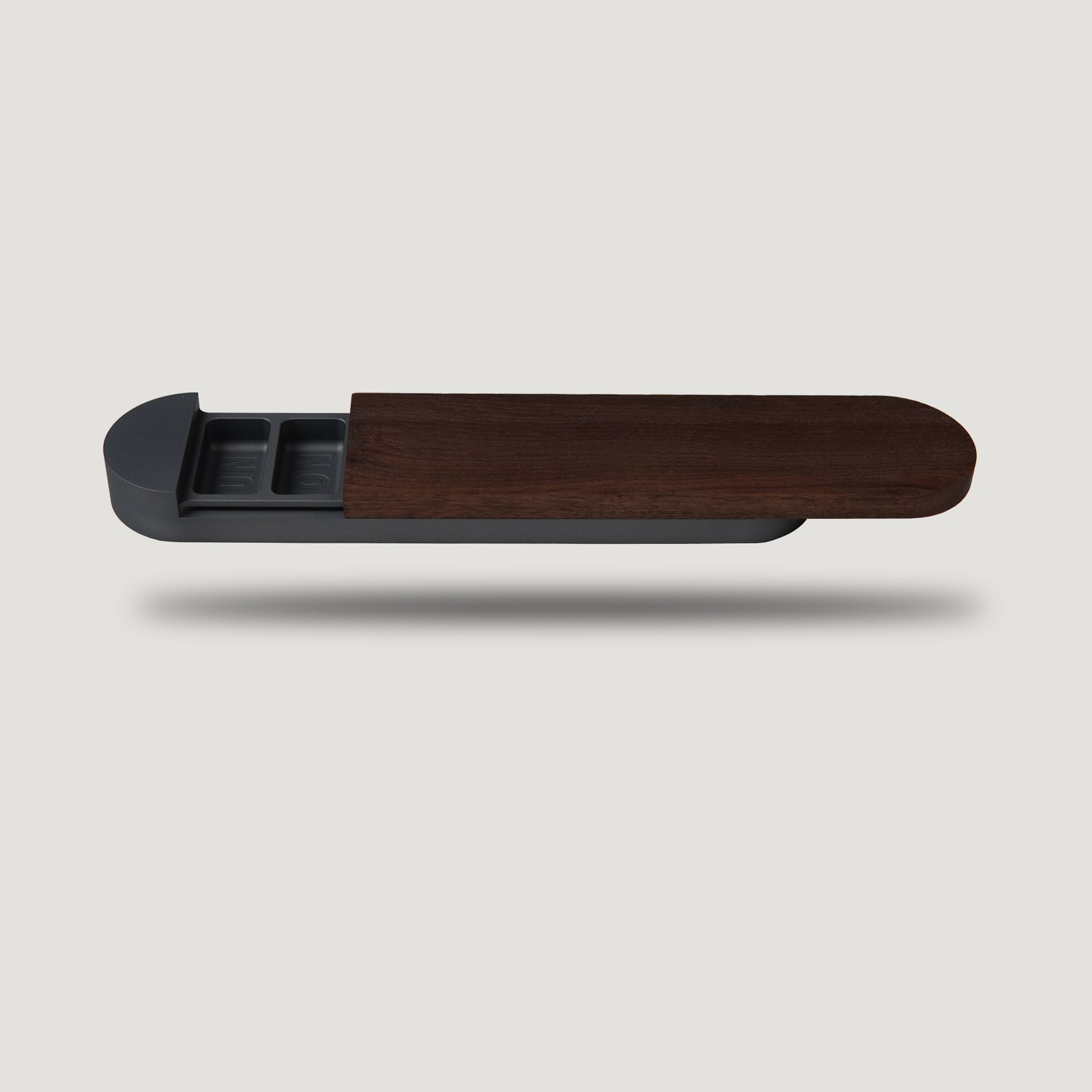 Crafted from aerospace-grade billet aluminum and accented with hand-selected walnut wood, this pill box offers both durability and elegance. The smooth sliding cover, secured by precision-engineered magnets, provides a satisfying and seamless closure. Finished with a satin anodized surface, it combines modern luxury with timeless craftsmanship. Built to last, this pill box is the perfect blend of form, function, and refined design. MADE IN USA